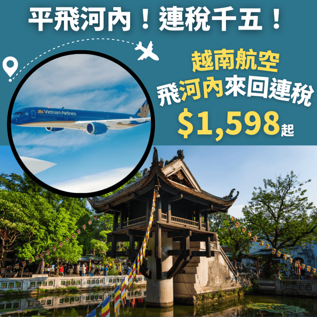 明年6月16日前出發!香港飛河內來回連稅只需$1,598起
