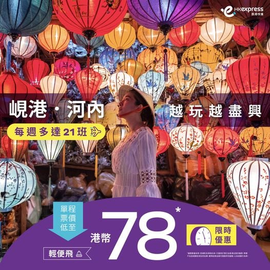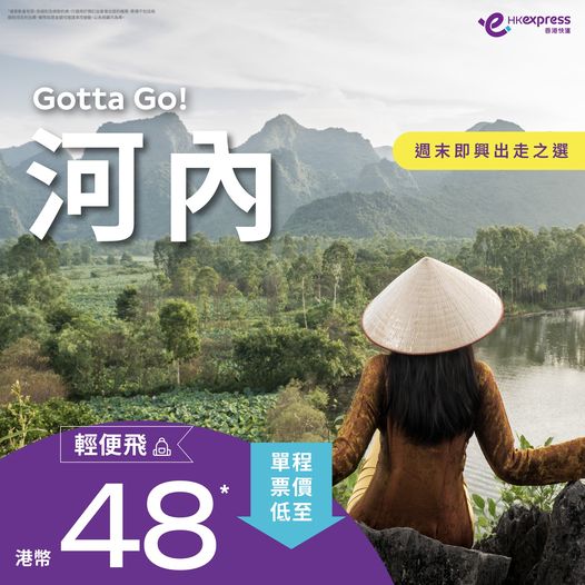 河內限時優惠!11月30日前出發!暑假旺季都有!香港飛河內單程只需$48起 – HK Express (優惠至5月30日)