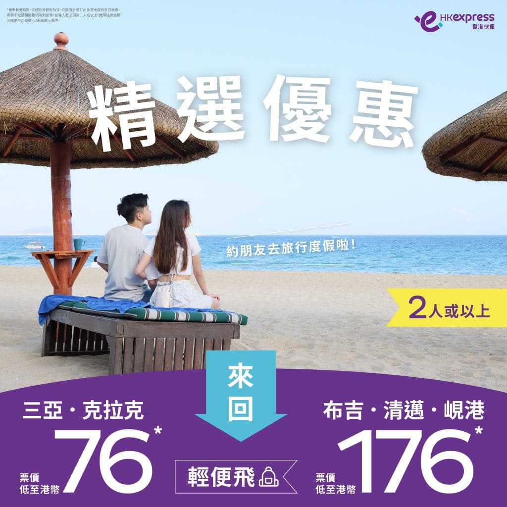 布吉/清邁/峴港/三亞限時優惠!12月13日前出發!香港飛布吉/清邁/峴港二人同行單程每人$88起、三亞/克拉克$38起 – HK Express (優惠至6月4日)