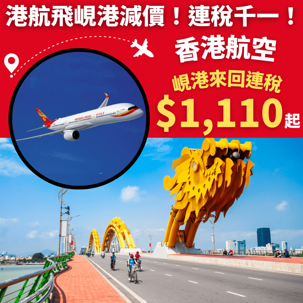 港航飛峴港減價啦!連稅千一!10月24日前出發!香港飛峴港來回連稅只需$1,110起 – 香港航空