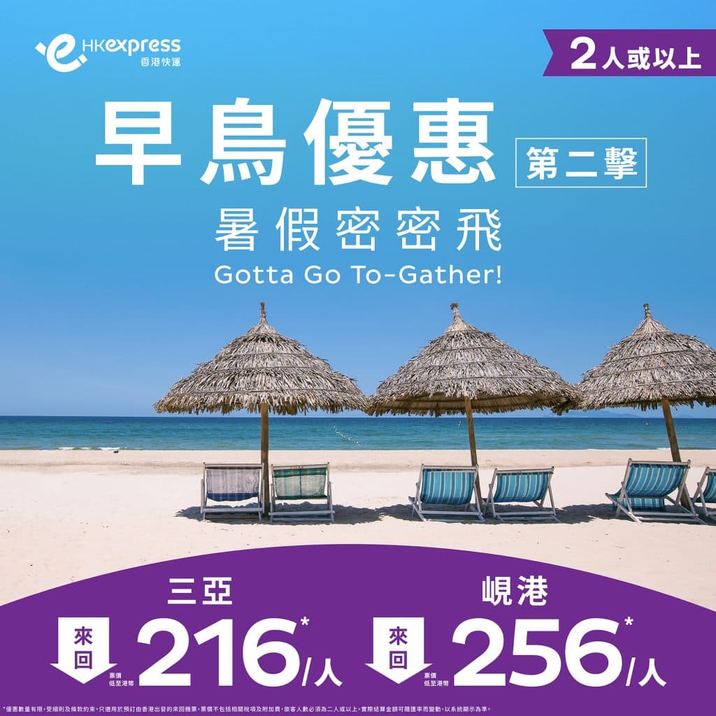 第二擊!泰國/河內限時優惠!12月13日前出發!暑假旺季都有!香港飛曼谷/布吉/清邁/河內單程只需$41起 – HK Express (優惠至5月31日12noon)