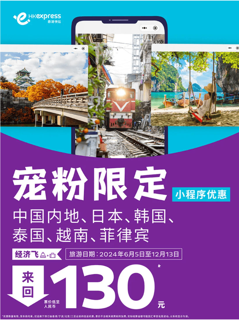 HK Express微信小程序限定優惠第二擊!$41飛泰國/越南!