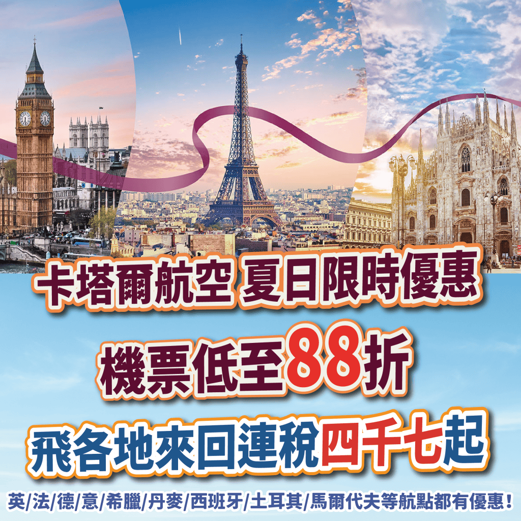 詳情:http://www.qatarairways.com/zh-hk/offers/summer.html