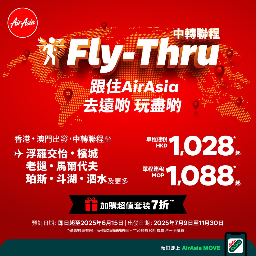 雖然AirAsia無香港直飛馬爾代夫/珀斯等長途航線,但係就有Fly-Thru(中轉聯程)服務