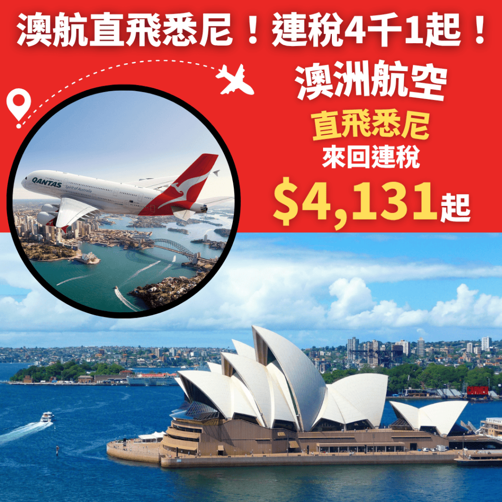 澳航直飛悉尼!連稅4千1起!11月30日前出發!香港直飛悉尼來回連稅$4,111起 – 澳洲航空 (優惠至7月31日)