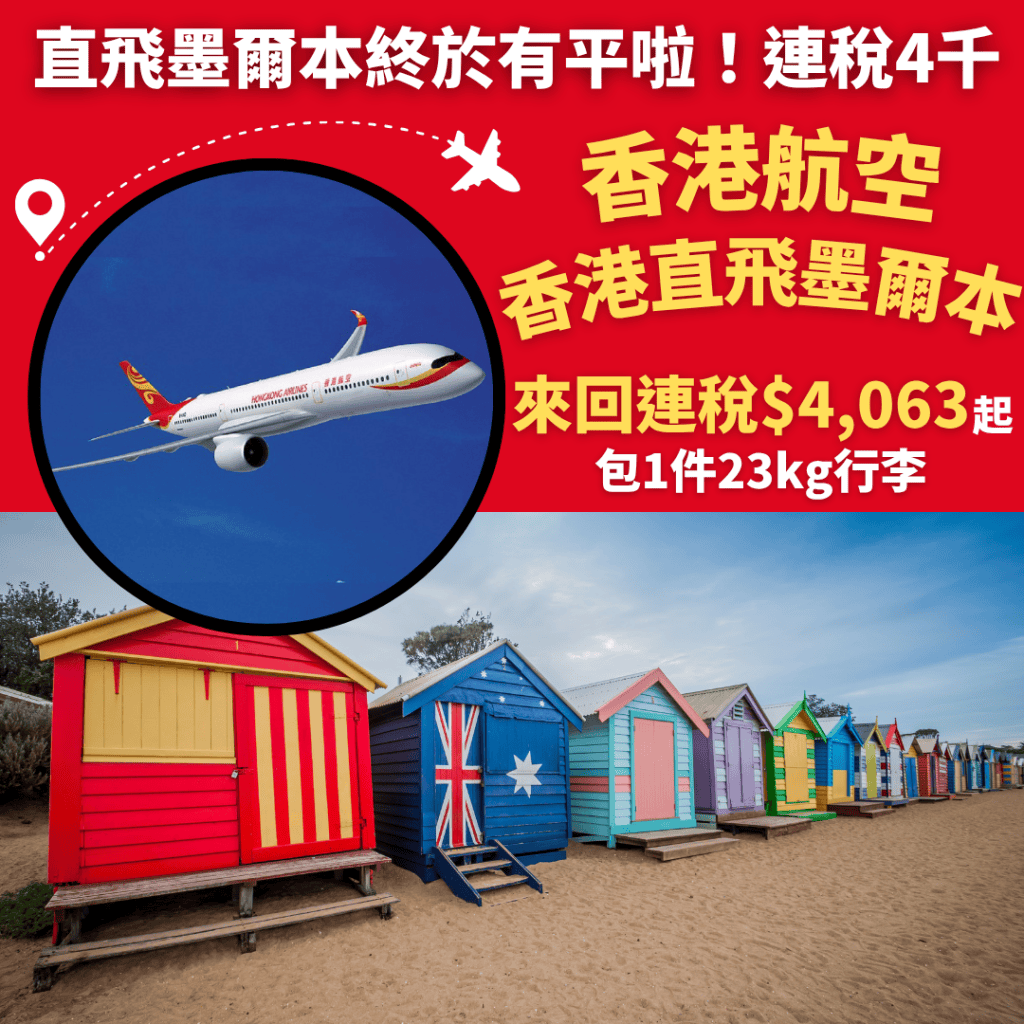 直飛墨爾本終於有平啦!連稅3千8!包23kg寄艙行李!明年3月25日前出發!香港直飛墨爾本來回連稅只需$3,819起 – 香港航空
