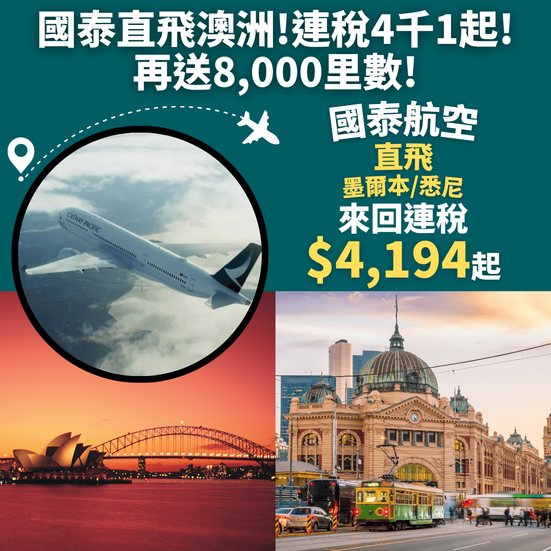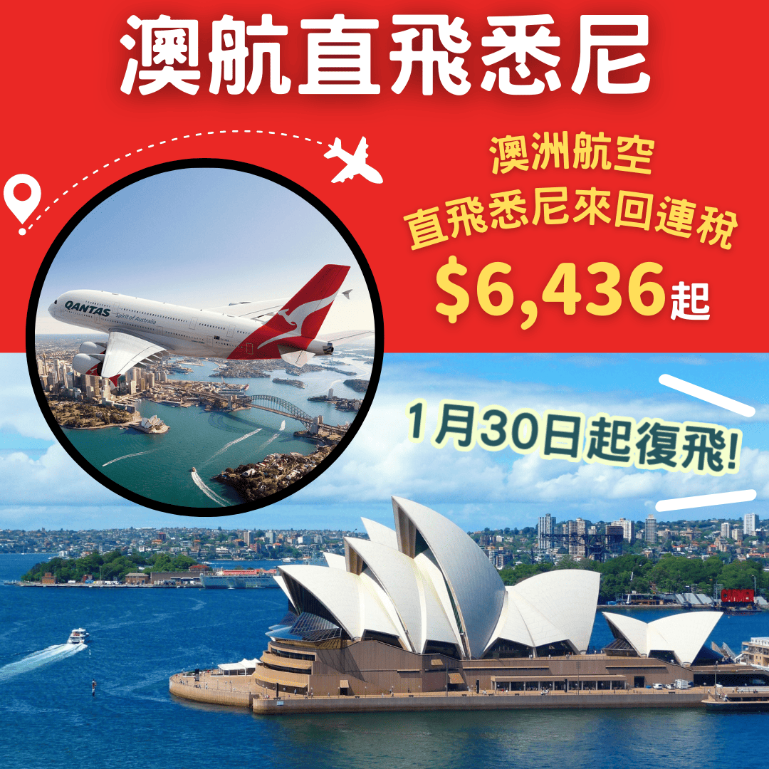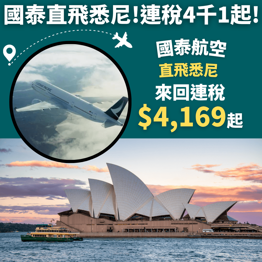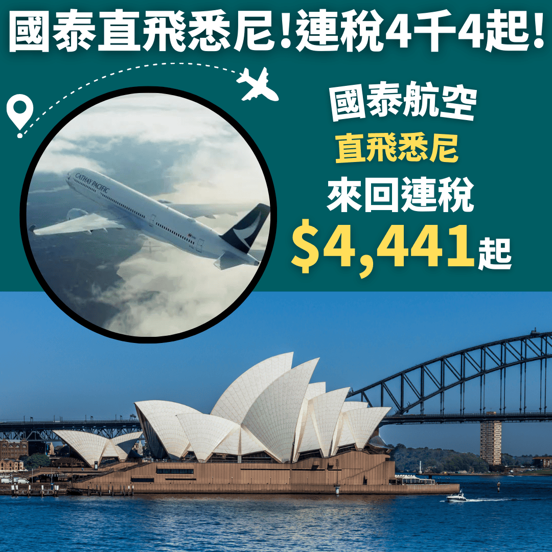 減$120後 , 香港直飛悉尼來回連稅只需$4,118起
