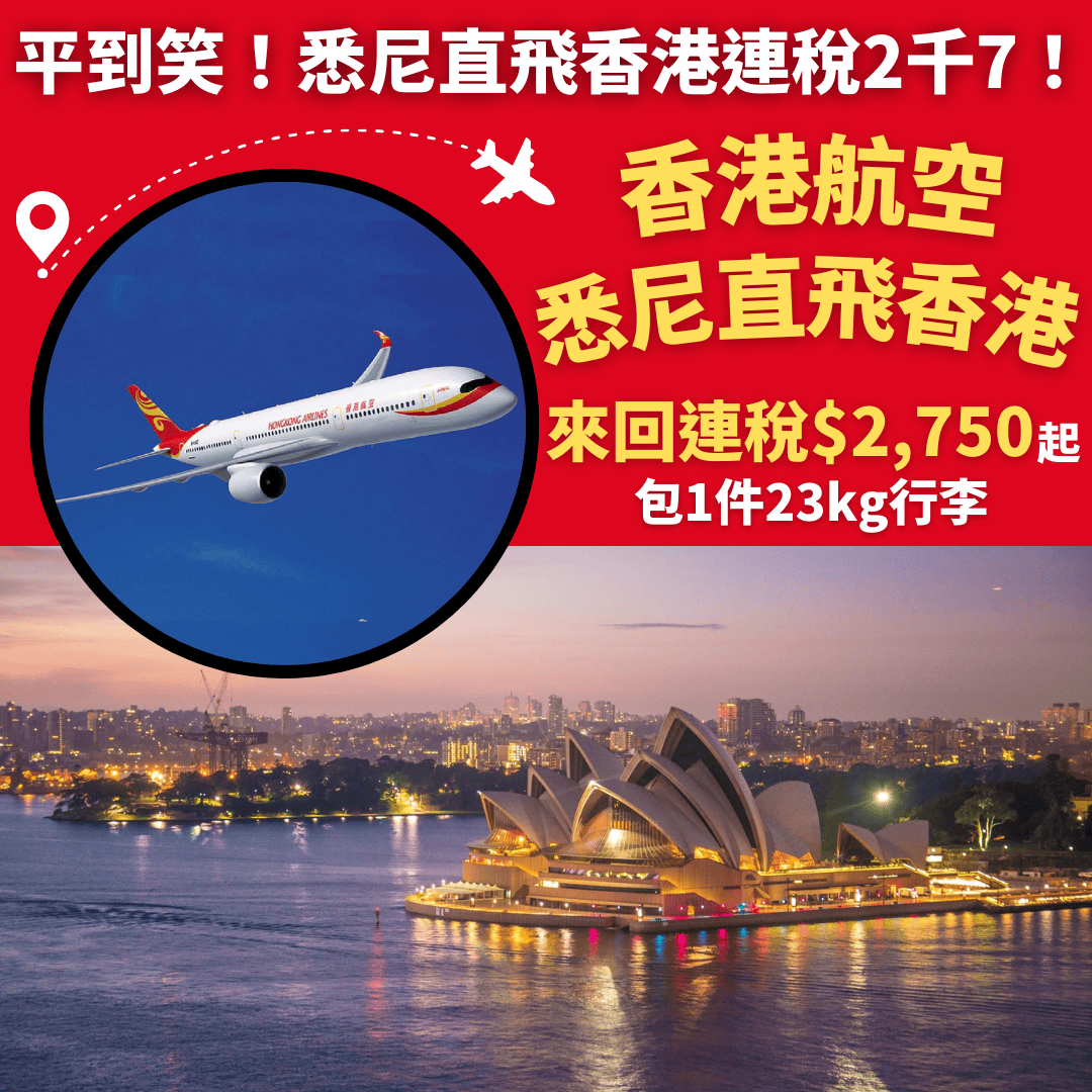 【永安旅遊 x 香港航空】大癲!直飛悉尼平到癲!連稅3千1起!包23kg寄艙行李!預訂香港航空飛悉尼單程/來回機票激減$400!香港直飛悉尼來回連稅只需$3,103起!