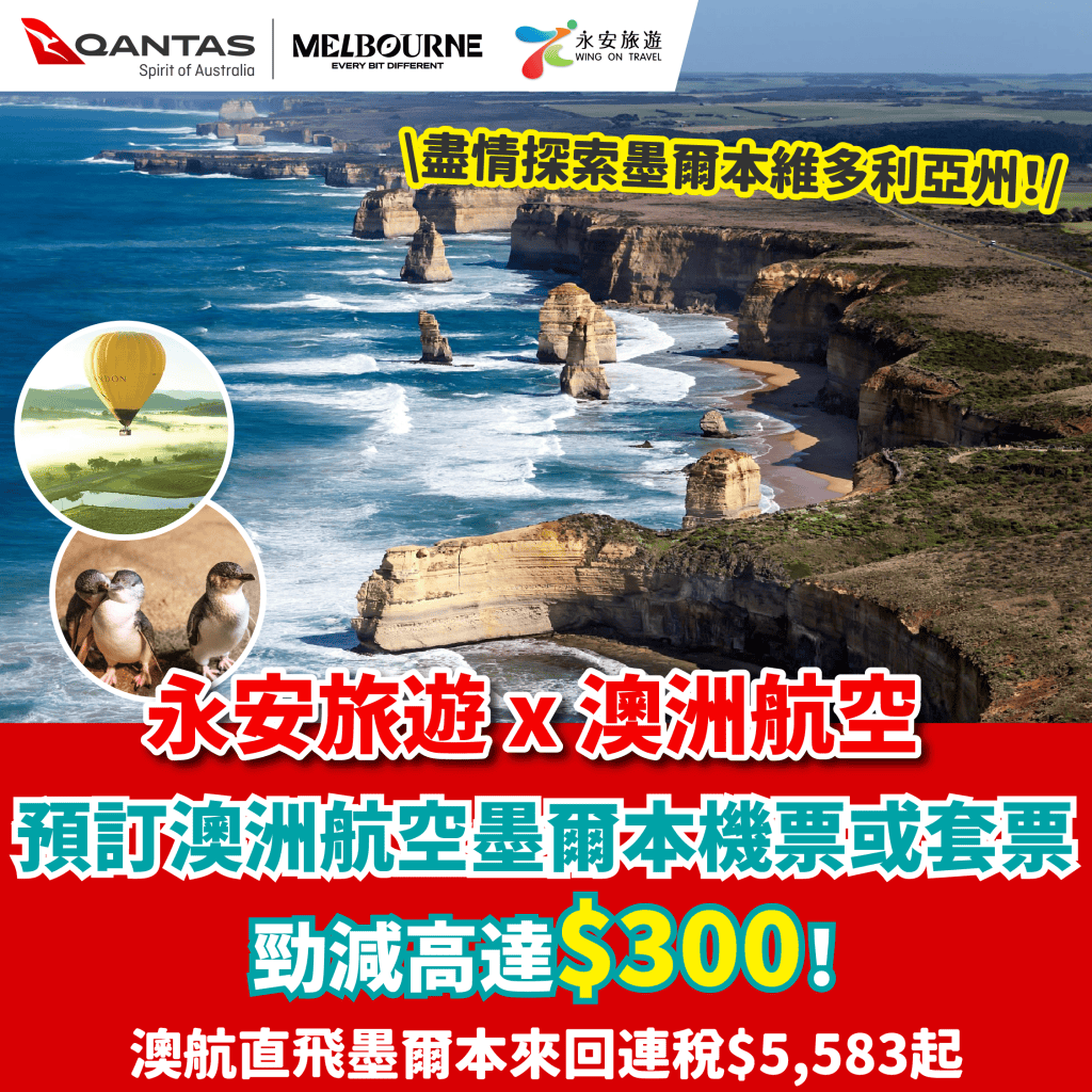 香港直飛墨爾本來回連稅只需$4,639起、悉尼$4,790起、布里斯班$5,110起