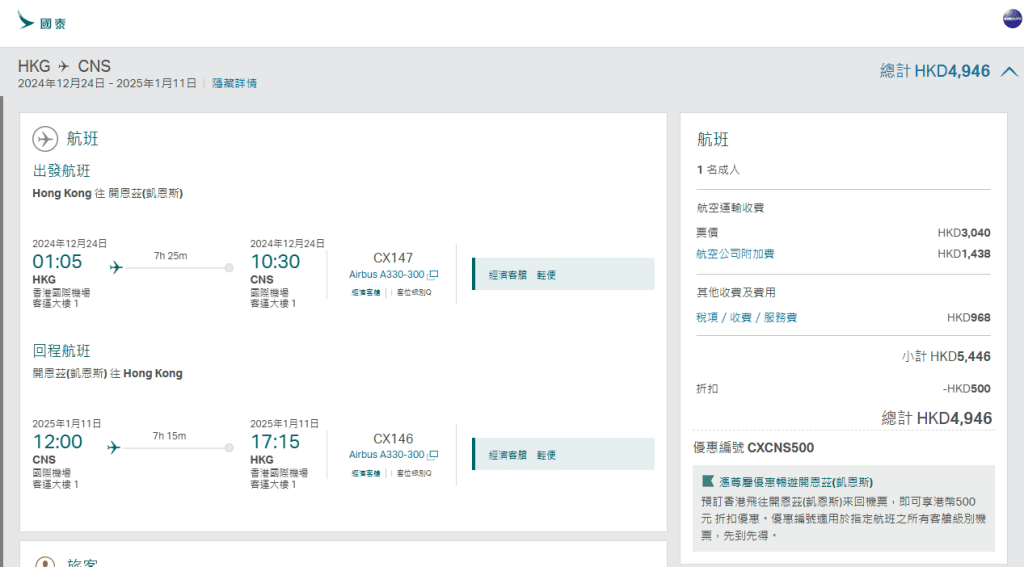 國泰飛澳洲當然都有優惠!連稅4千6起!