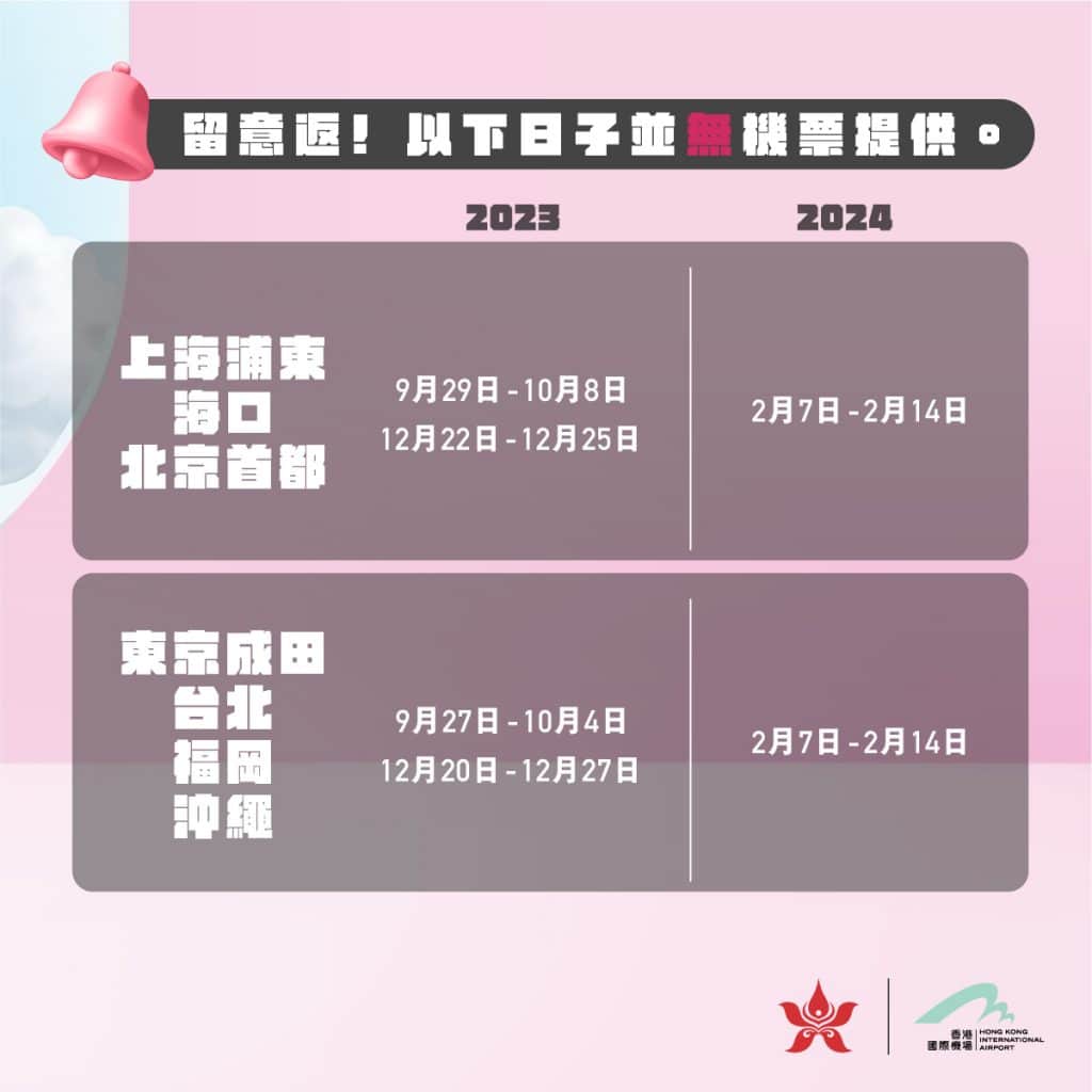 (唔同航點價錢有所不同,需另付稅項及燃油附加費)