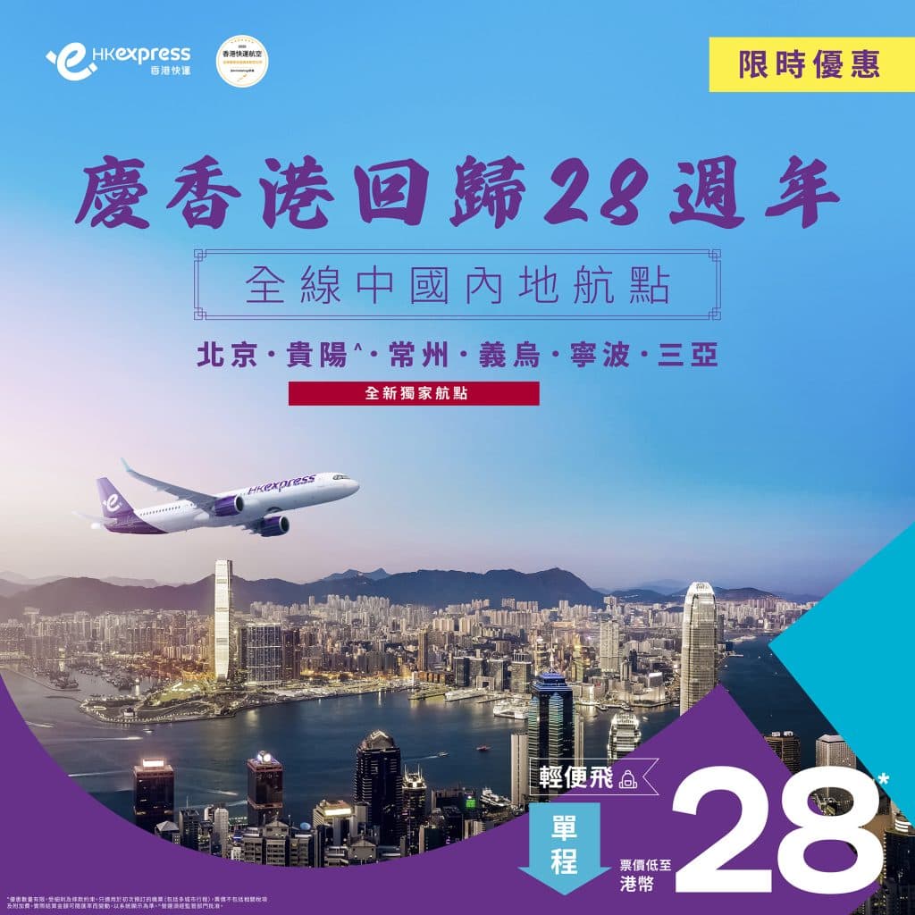 $28飛北京/三亞/寧波/常州/義烏/貴陽!暑假旺季都有平!12月14日前出發!香港飛北京/三亞/寧波/常州/義烏/貴陽單程只需$88起 – HK Express (優惠至7月1日)