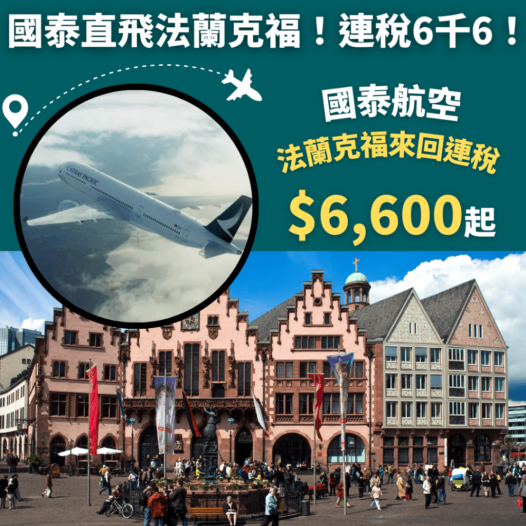 國泰直飛法蘭克福!連稅6千5!12月31日前出發!香港直航往返法蘭克福來回連稅只需$6,573起 – 國泰航空 (優惠至10月15日)