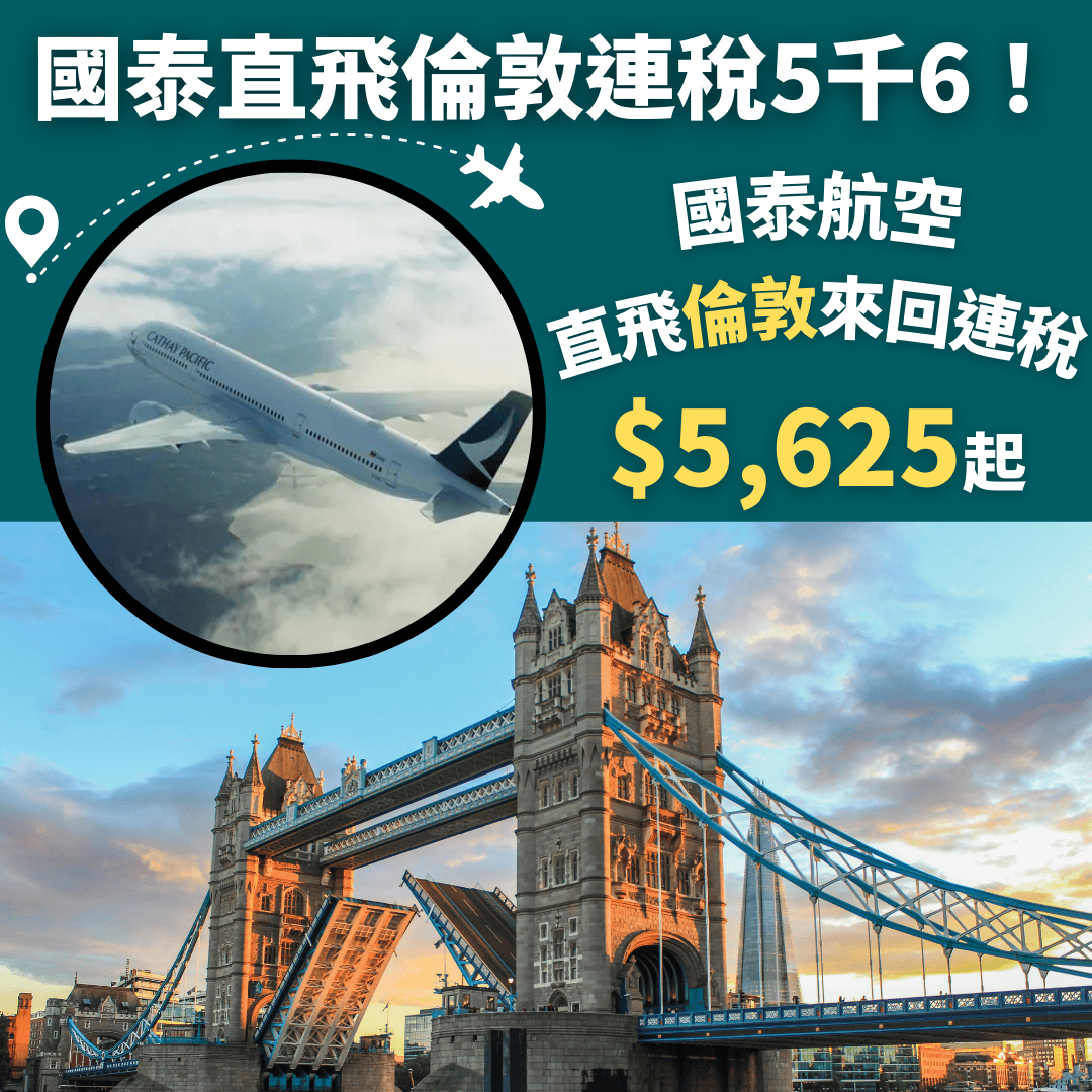 國泰直飛倫敦連稅5千6!明年6月3日前出發!香港直航往返倫敦來回連稅只需$5,625起 – 國泰航空