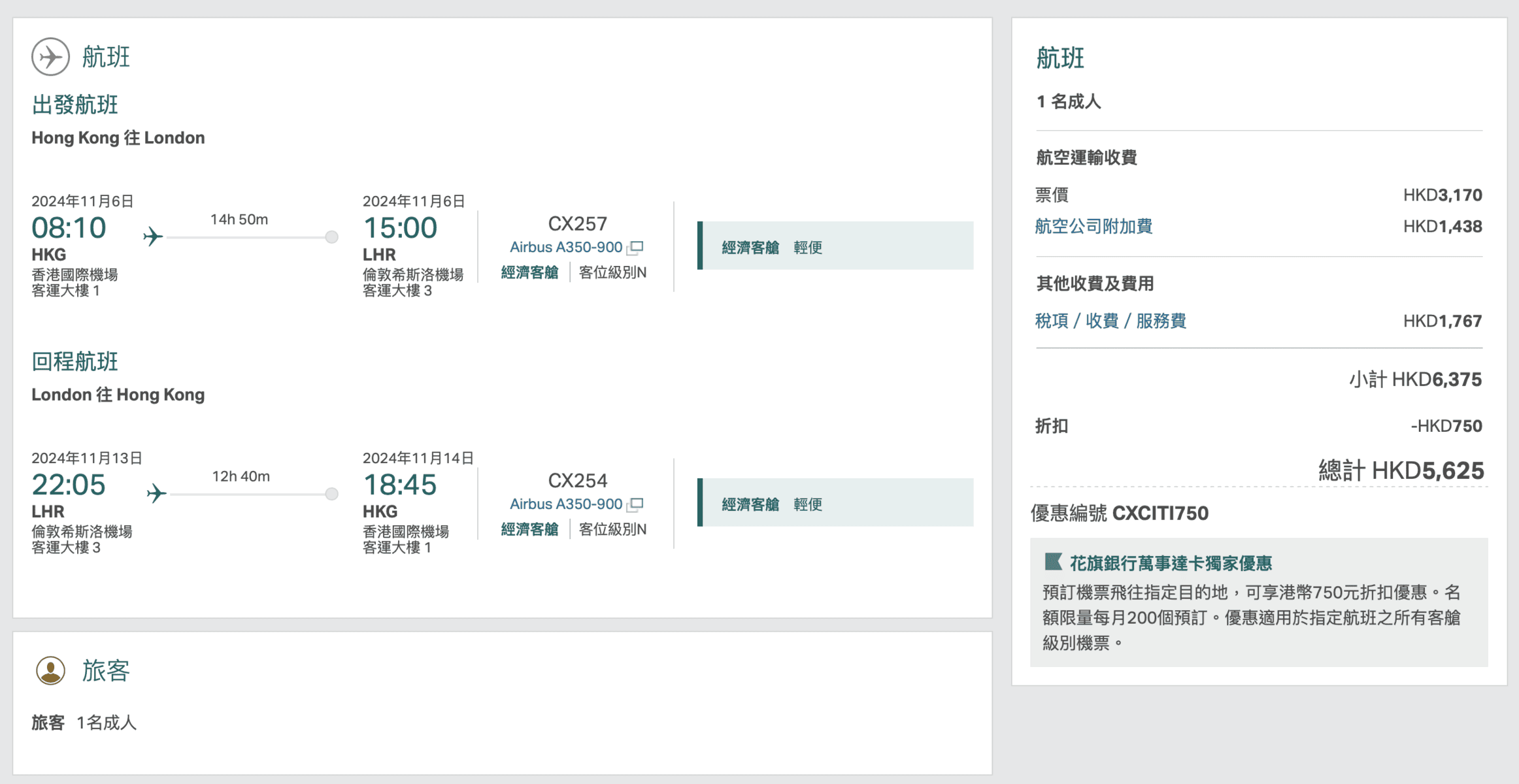 國泰航空官網Citi Mastercard預訂長途航線可享$750折扣優惠編號:CXCITI750 (名額200個)