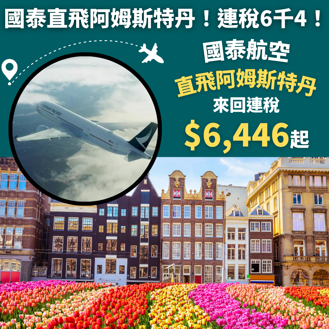 國泰直飛阿姆斯特丹!連稅6千4!香港直飛阿姆斯特丹來回連稅只需$6,446起 – 國泰航空 (優惠至12月21日)
