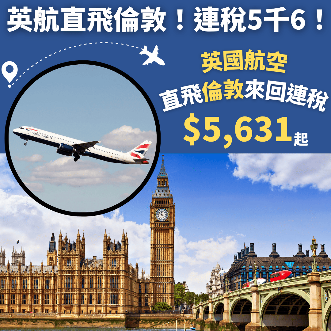 6月14日前出發!香港直航往返倫敦來回連稅只需$5,787起,直航嚟講價錢算唔錯!