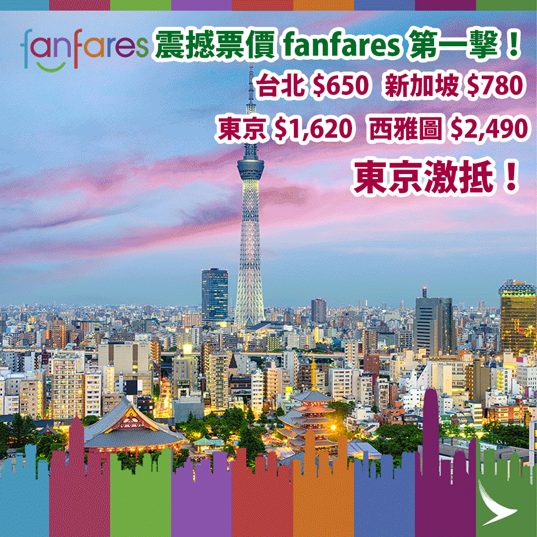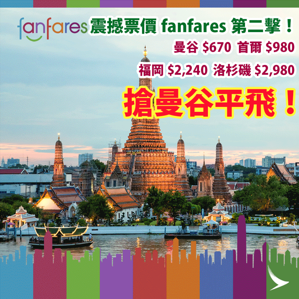 國泰航空會喺下星期二(4月30日)及星期四(5月2日)推出fanfares震撼票價優惠!今次有兩個回合,千萬唔可以錯過!