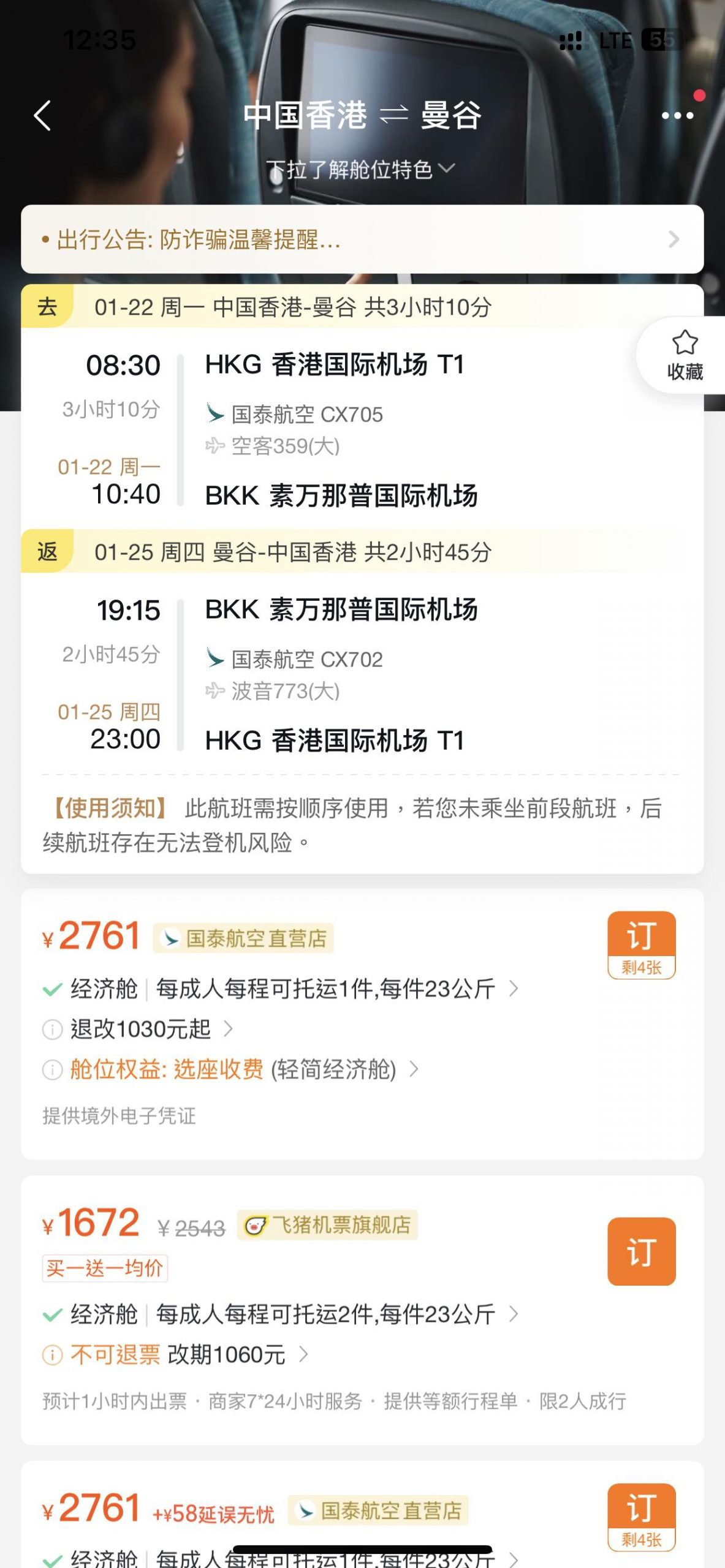 想weekend出發同包埋1件20kg寄艙行李可以揀Standard票價,單程$610起,來回連稅$1,712起,包埋揀位