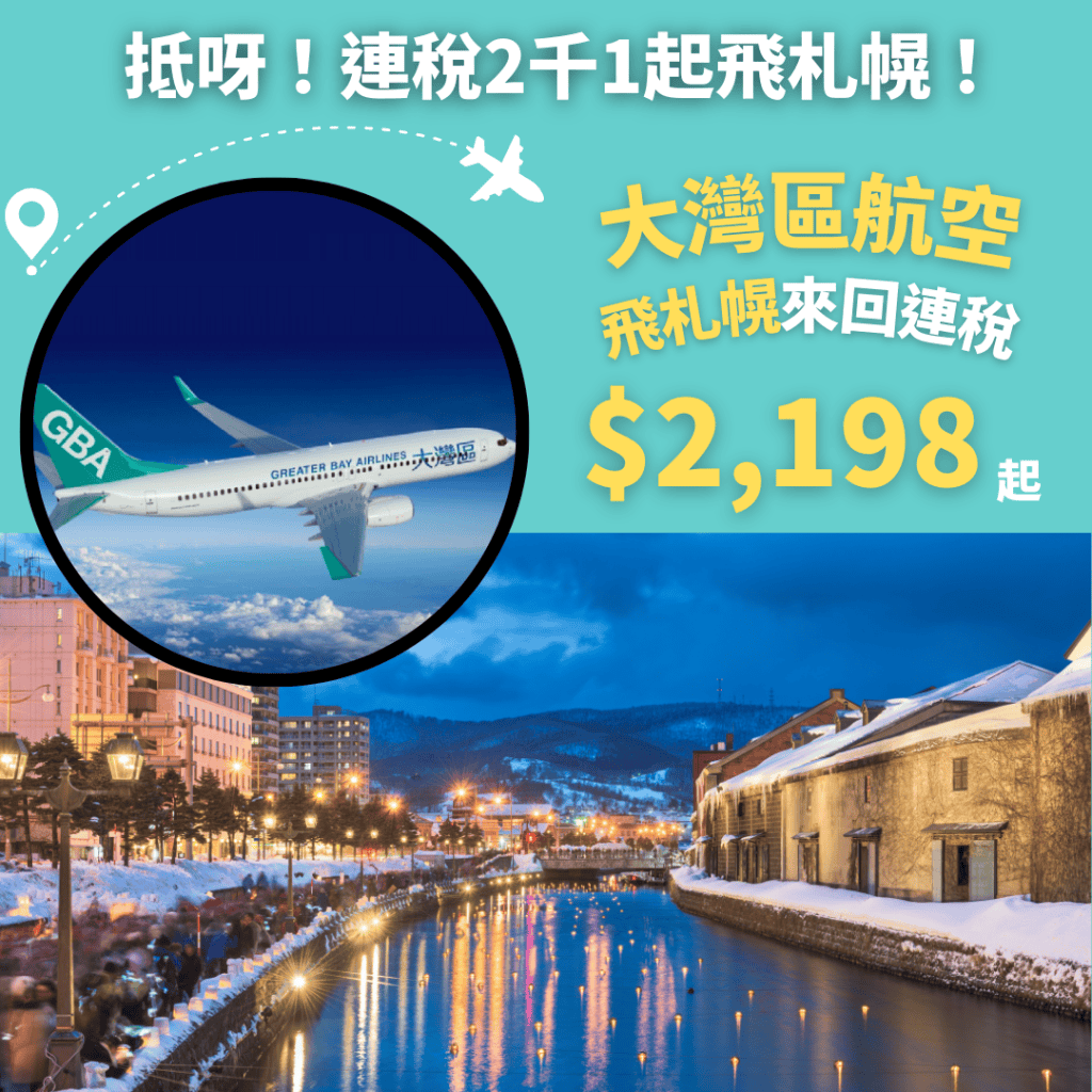 抵呀!連稅2千1起飛札幌!包20kg行李連稅2千4起!明年3月26日前出發!香港飛札幌來回連稅$2,198起 – 大灣區航空