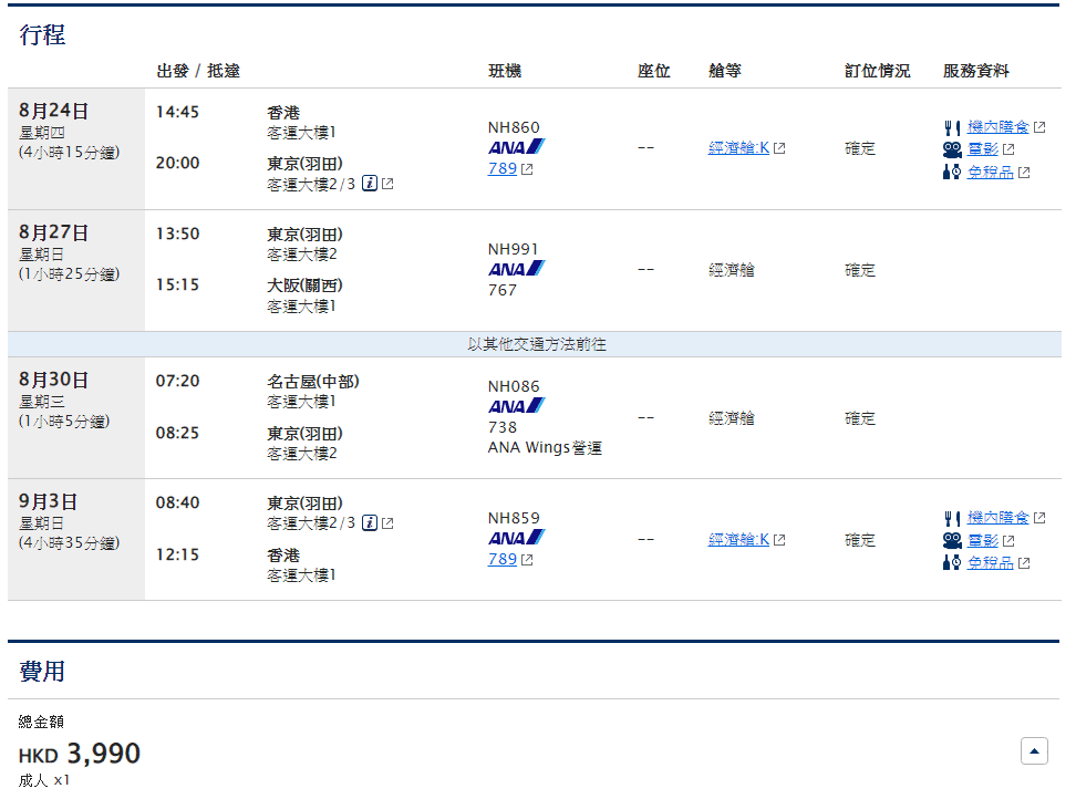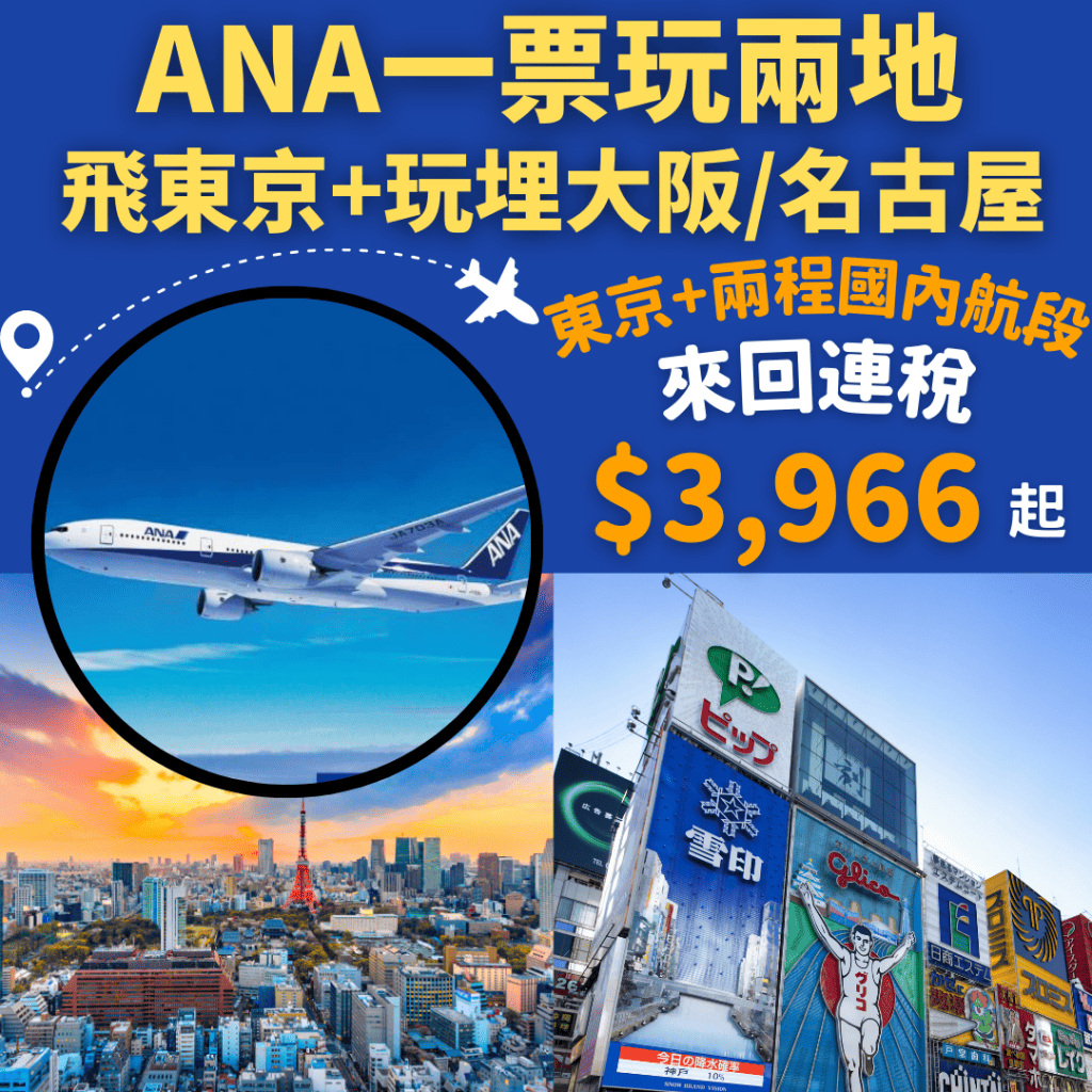 ANA官網https://www.ana.co.jp/zh/hk/ (來回連稅:東京羽田$2,488起、東京成田$2,599起)
