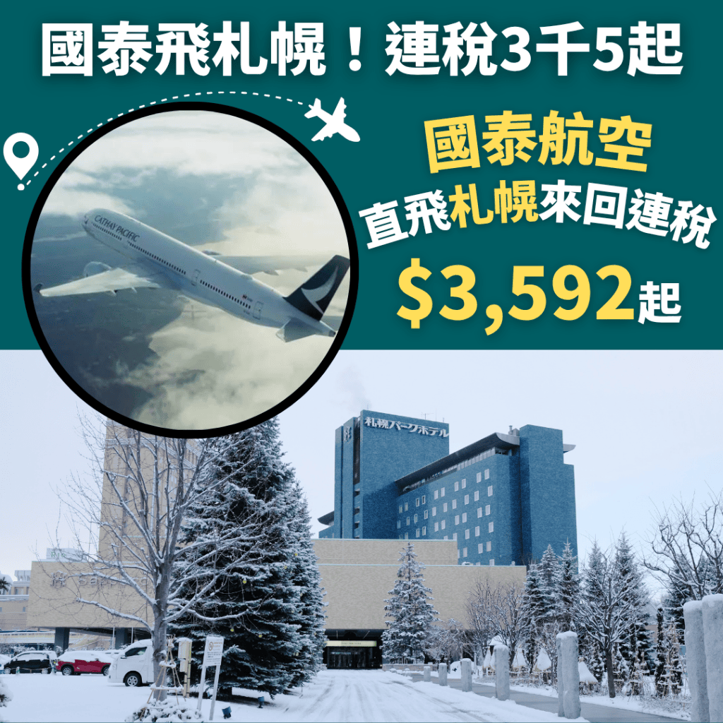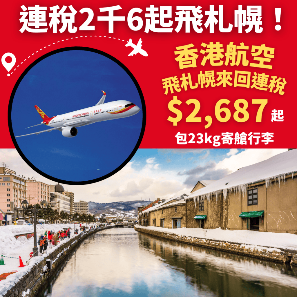 抵呀!連稅2千6飛札幌!包23kg寄艙行李!12月11日前出發!香港飛札幌來回連稅只需$2,687起 – 香港航空
