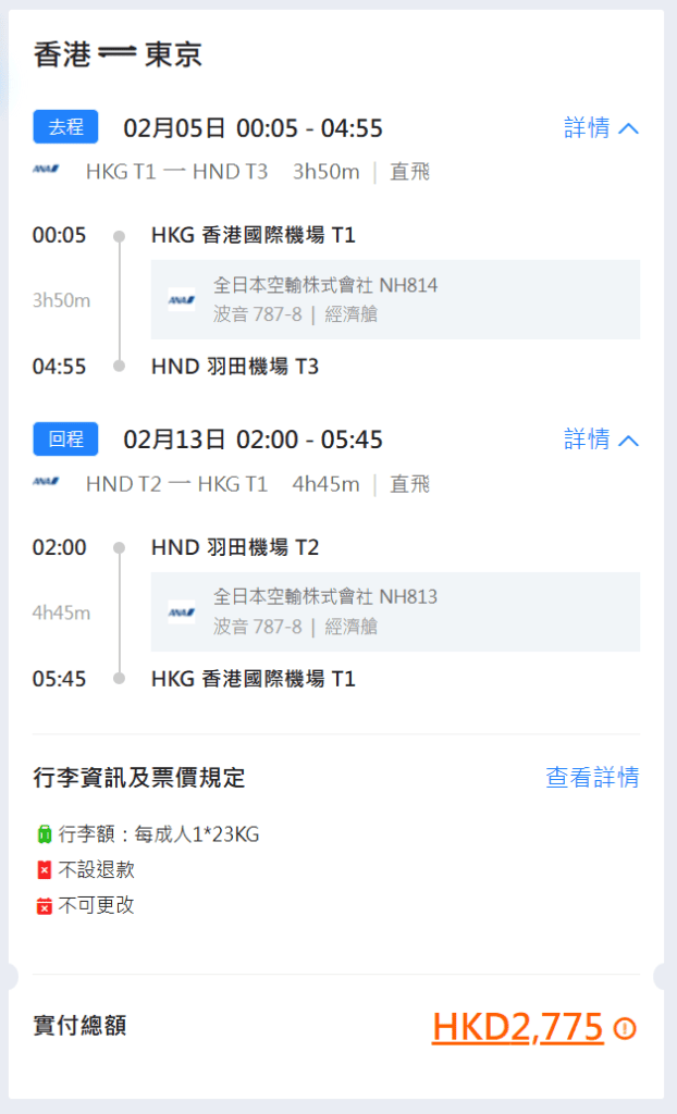 今次羽田凌晨機都平咗,用埋永安旅遊 x 滙豐信用卡減$180優惠,來回連稅$2,775起