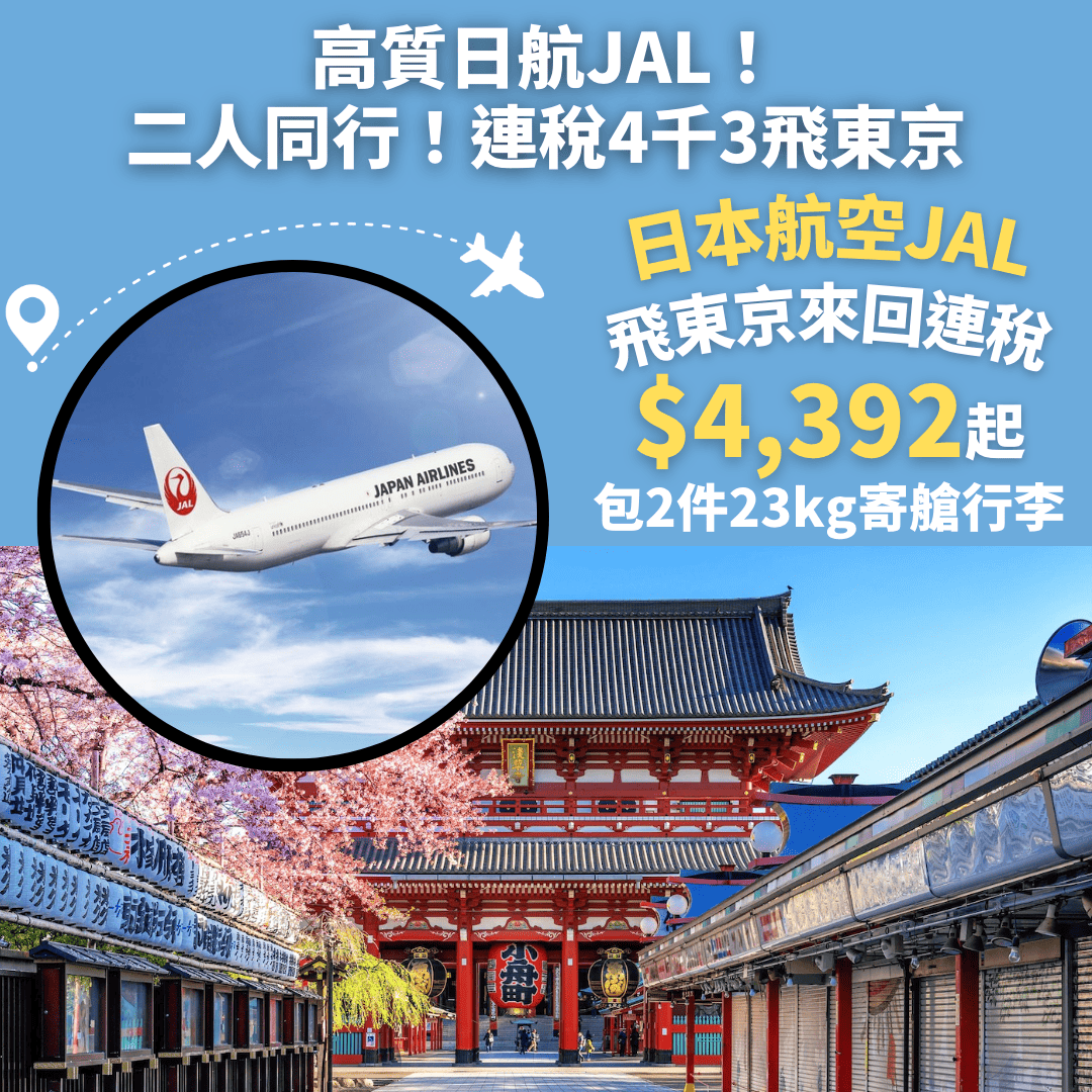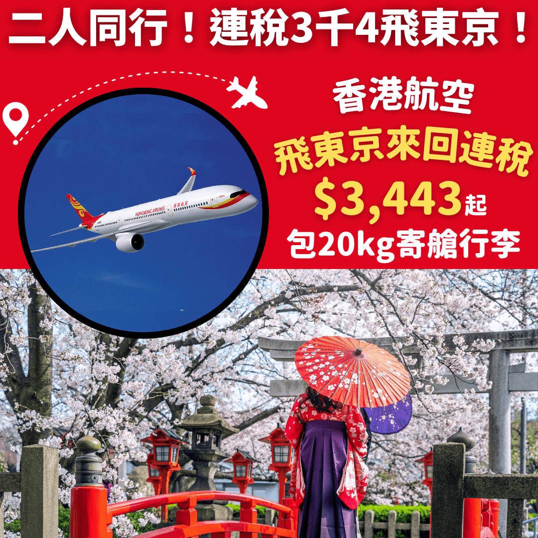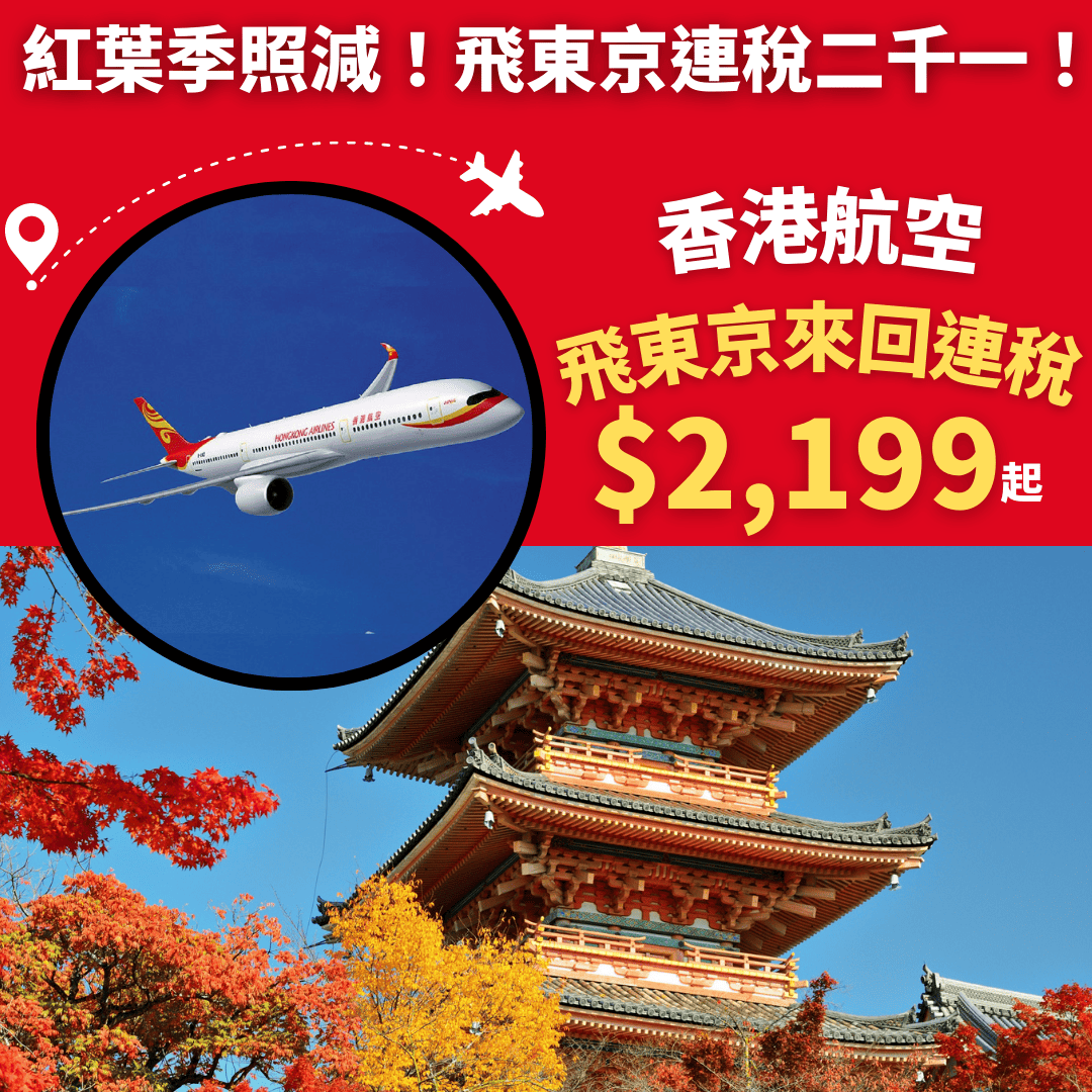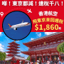 香港飛東京羽田來回連稅只需$2,650起、東京成田$2,763起