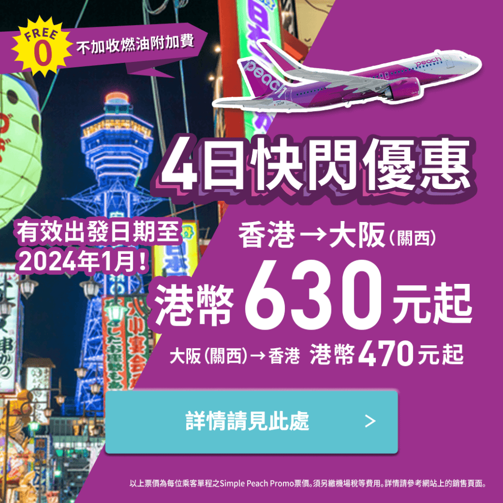 ANA官網:https://www.ana.co.jp/zh/hk/ (來回連稅:東京羽田$2,696起、東京成田$2,807起)