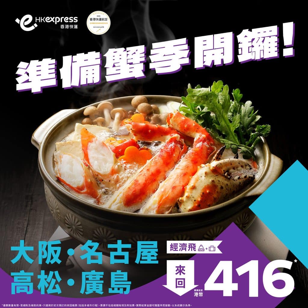 日本限時優惠!$158飛大阪/名古屋/高松/廣島!明年3月15日前出發!香港飛大阪、名古屋、高松、廣島單程只需$158起 – HK Express (優惠至9月9日)