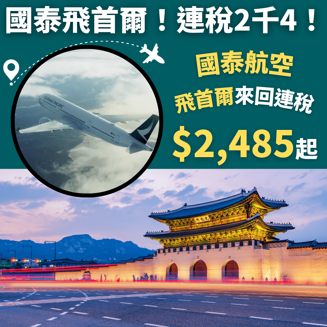 國泰飛首爾!連稅2千4!香港飛首爾來回連稅$2,485起 – 國泰航空 (優惠至12月31日)