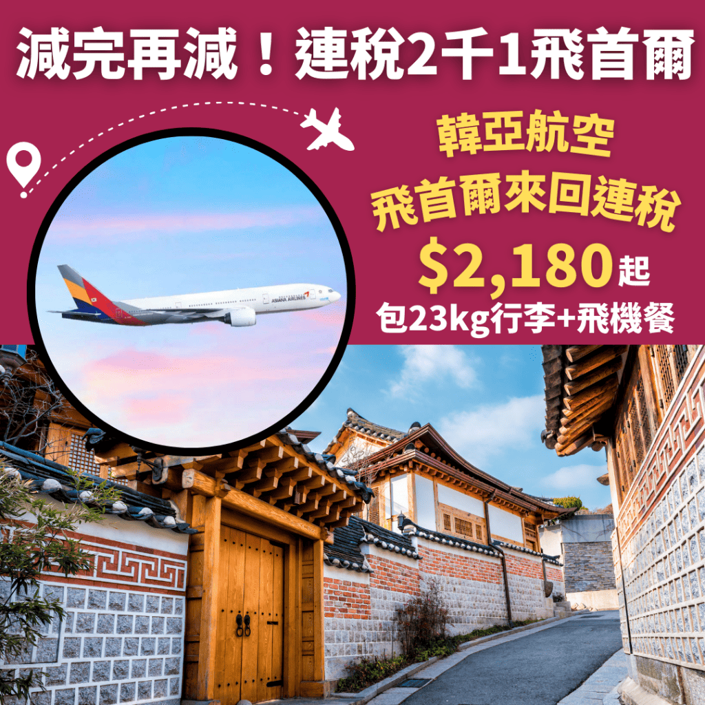 嘩!韓亞減完再減!連稅2千1飛首爾!6月30日前出發!香港飛首爾來回連稅只需$2,180起 – 韓亞航空 (優惠至12月17日)