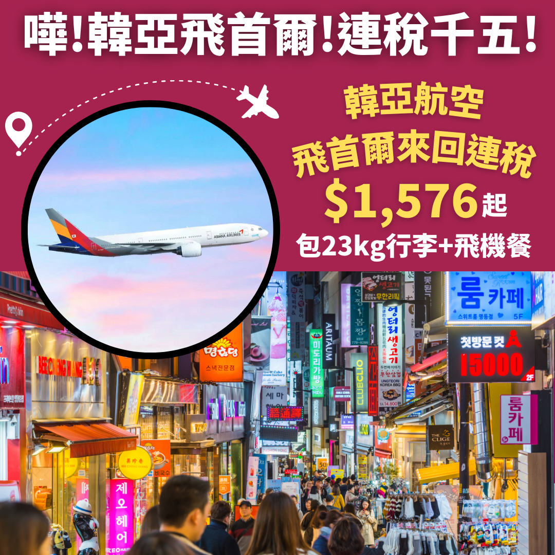 早幾日介紹嘅韓亞連稅千五飛首爾航班時間唔啱心水?(詳情:https://www.meethk.com/152430)
