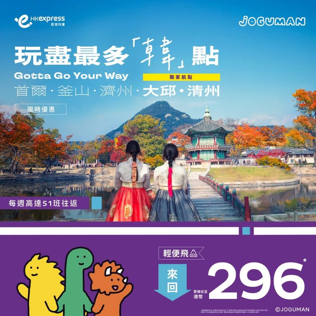 韓國突發限時優惠!$148飛首爾/釜山/濟州/大邱/清州!明年3月15日前出發!香港飛首爾/釜山/濟州/大邱/清州單程只需$148起 – HK Express (優惠至9月2日)