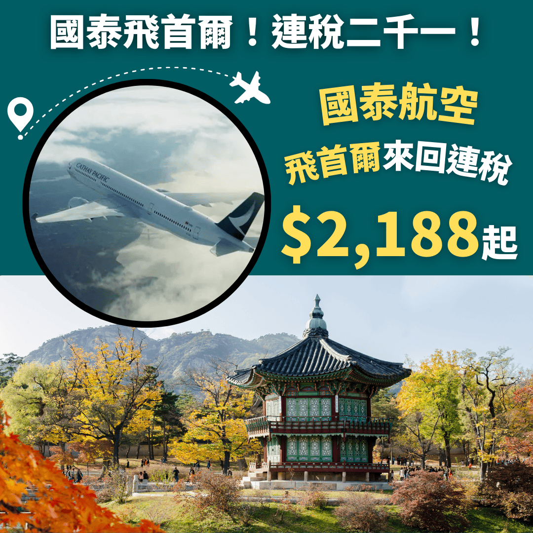 國泰飛首爾!連稅二千一!12月17日前出發!香港飛首爾來回連稅$2,188起 – 國泰航空 (優惠至9月30日)