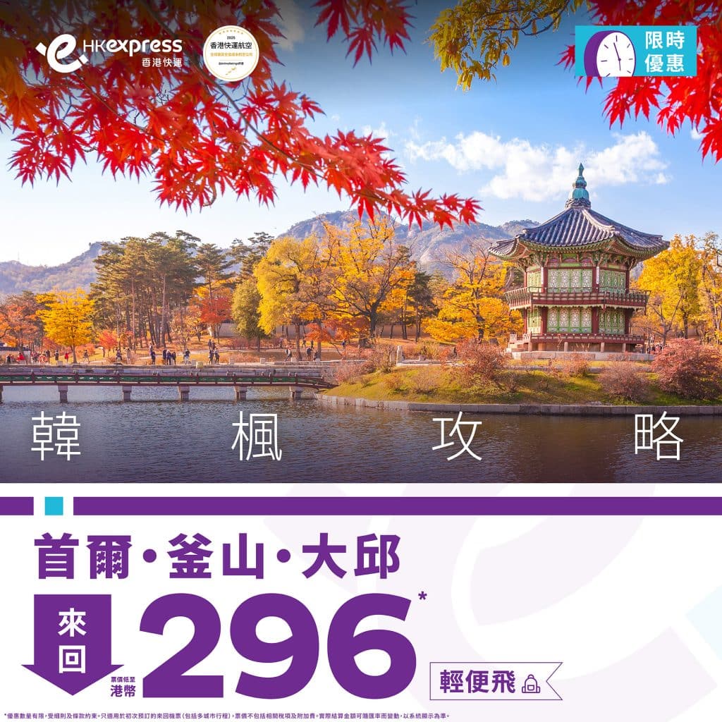 韓國限時優惠!$148飛首爾/釜山/大邱!紅葉季都有平!