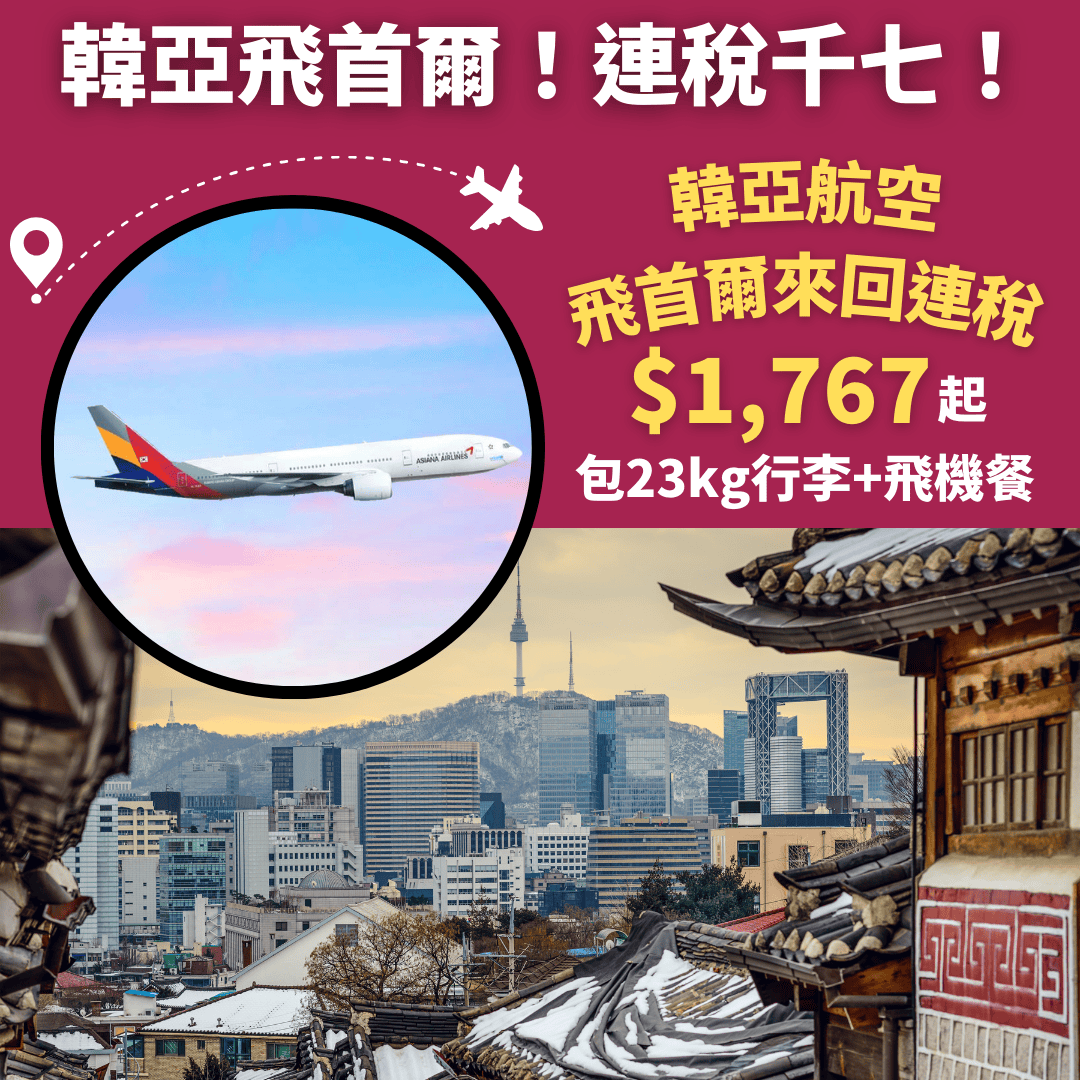 韓亞飛首爾!連稅千七!3月31日前出發!香港飛首爾來回連稅只需$1,767起 – 韓亞航空 (優惠至2月14日)