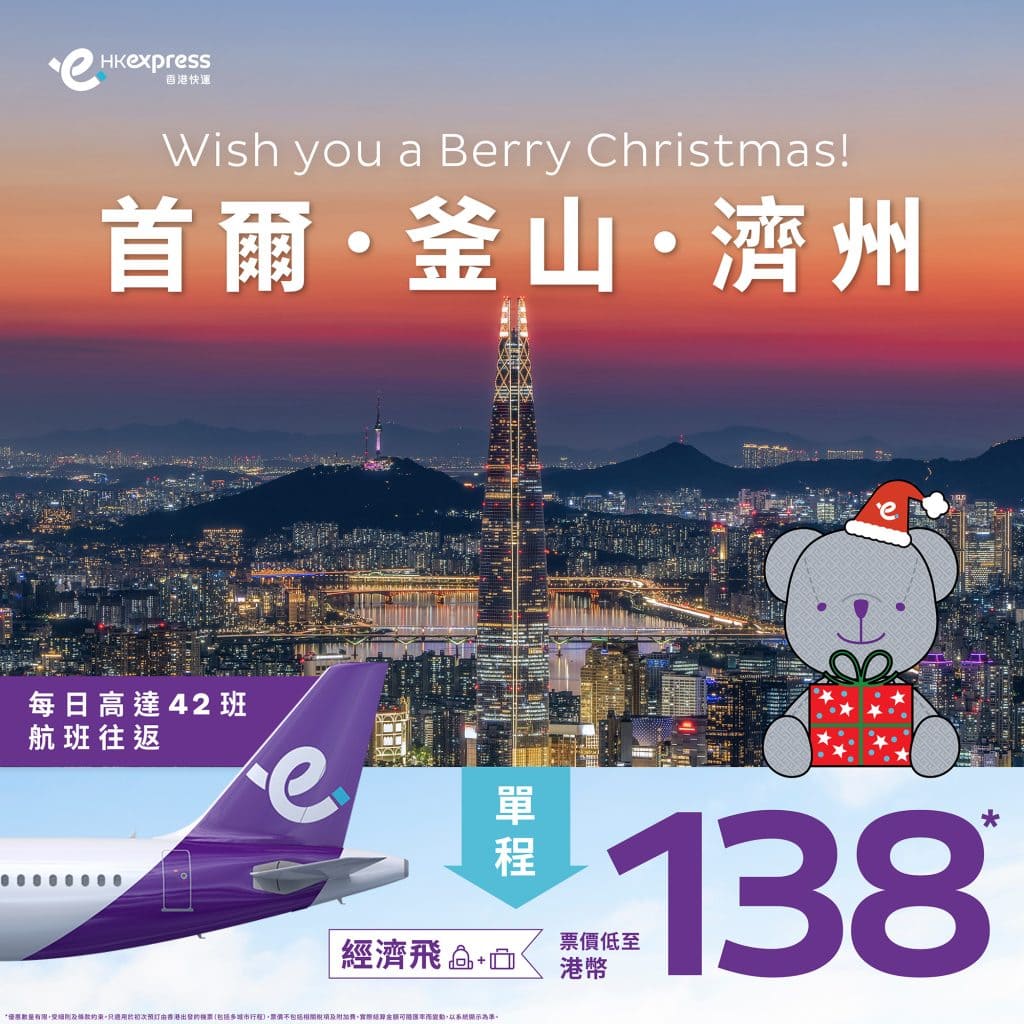 HK Express啱啱推出咗韓國聖誕限時優惠