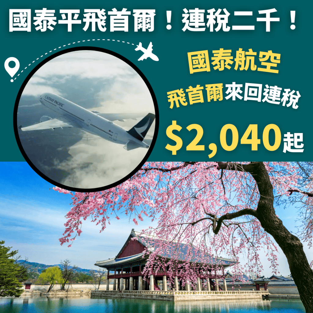 國泰飛首爾!連稅二千!6月30日前出發!香港飛首爾二人同行來回連稅每人$2,040起 – 國泰航空 (優惠至1月31日)