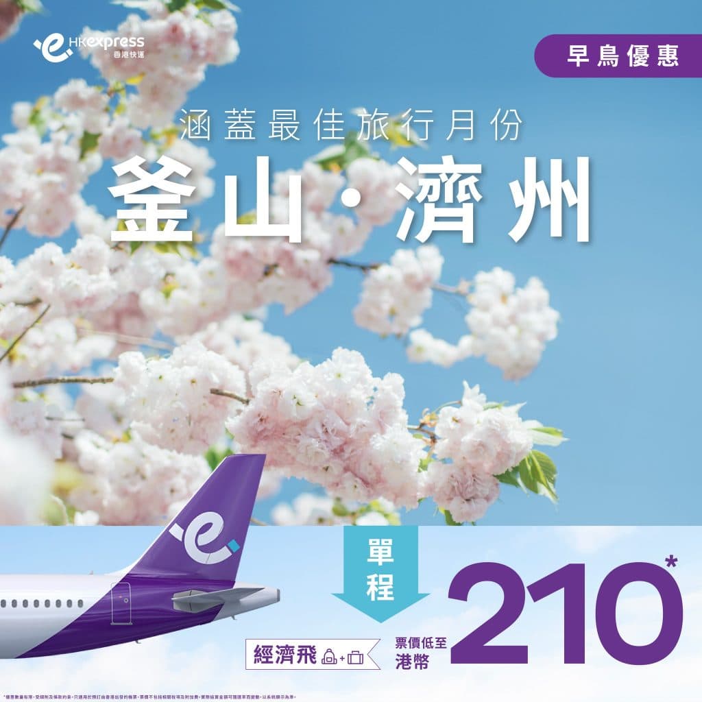 只限今日!韓國早鳥優惠!櫻花季都有平!10月25日前出發!香港飛釜山、濟州單程只需$180起 – HK Express (優惠至1月16日11:45pm)
