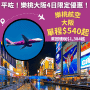 - 預訂全線香港出發之來回機票訂單(未連稅)享9折優惠,最高減$100!