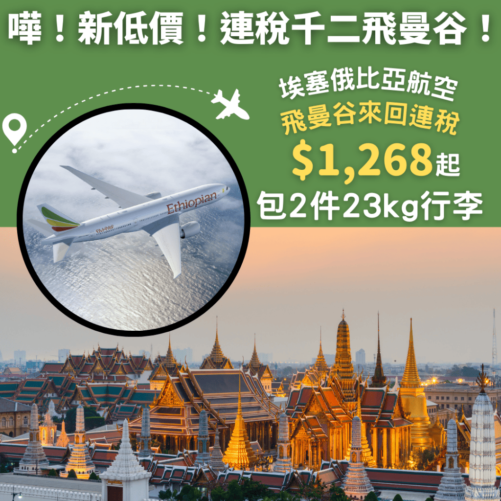 香港飛曼谷來回連稅只需$1,435起,比之前平多接近三百