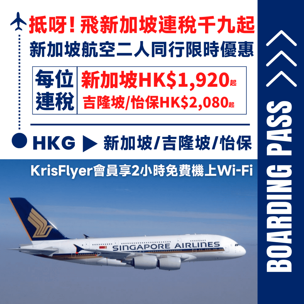 *機票須受禁運期及座位供應情況限制。合資格會員須承擔所有適用的稅項、附加費及其他費用,包括但不限於更改機票的相關手續費用。