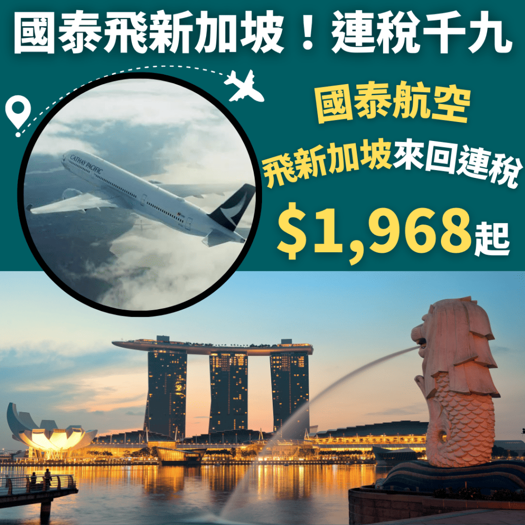 國泰飛新加坡!連稅千九!香港飛新加坡來回連稅$1,968起 – 國泰航空 (優惠至10月19日)