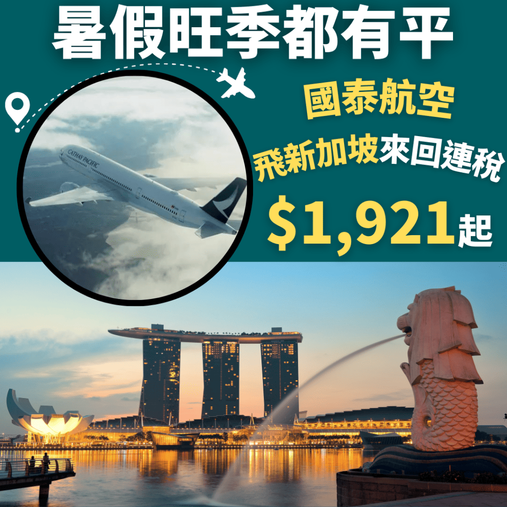 暑假旺季都有平!國泰飛新加坡!連稅千九!香港飛新加坡來回連稅$1,921起 – 國泰航空 (優惠至11月16日)