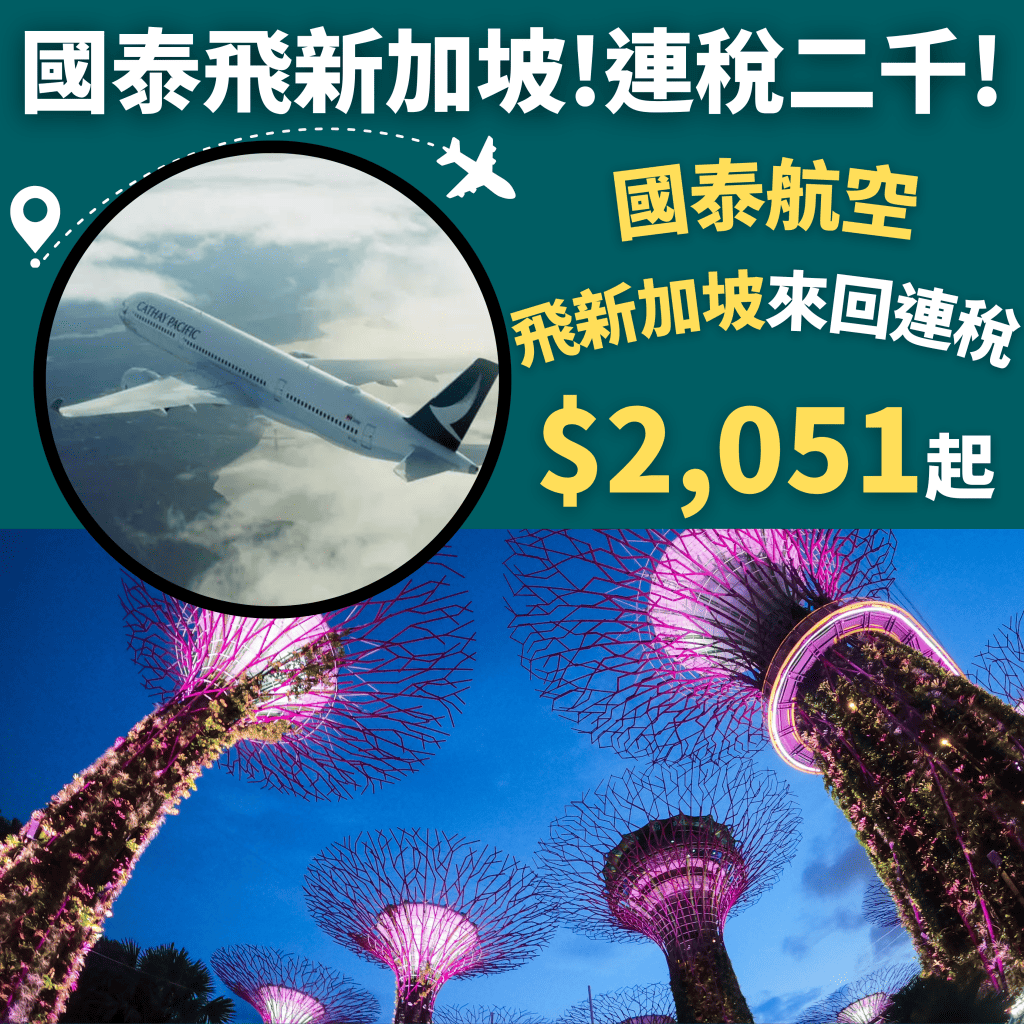 國泰飛新加坡!連稅二千!6月30日前出發!香港飛新加坡來回連稅$2,051起 – 國泰航空 (優惠至12月20日)