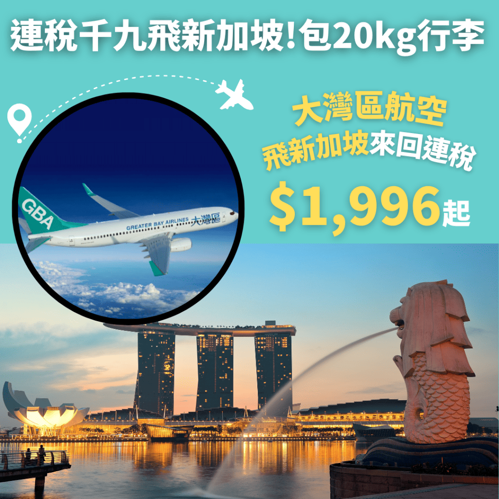 連稅千九飛新加坡!7月12日前出發!包20kg行李!香港飛新加坡來回連稅只需$1,996起 – 大灣區航空 (優惠至4月30日)