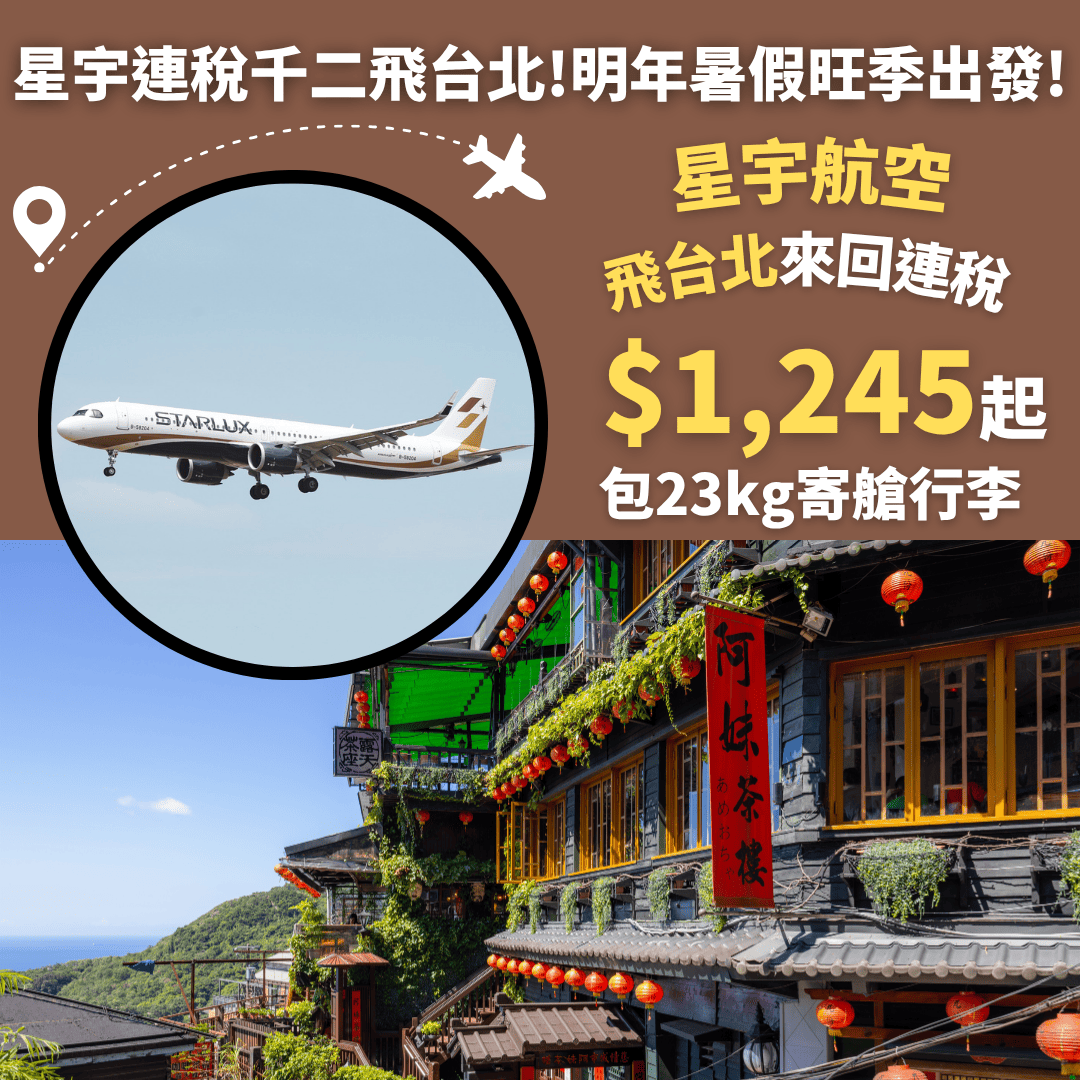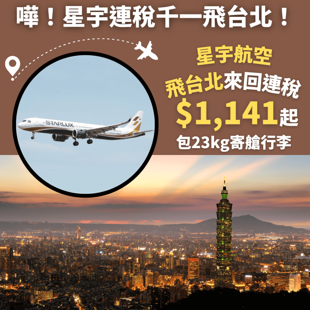 香港飛台北二人同行來回連稅每人只需$1,146起