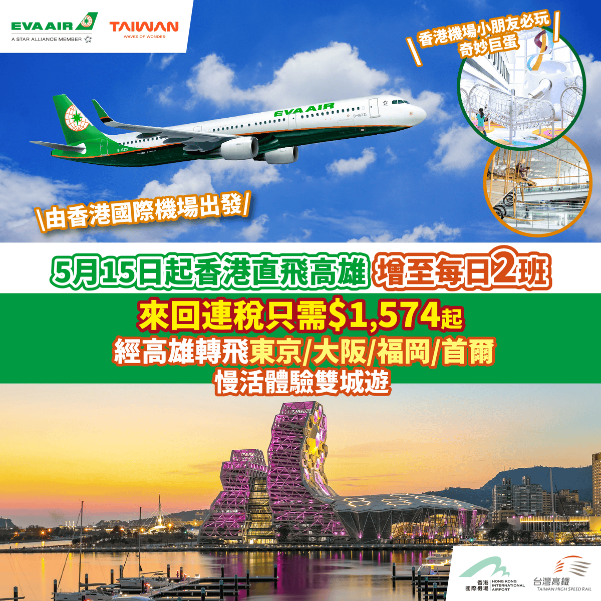 香港飛台北二人同行來回連稅每人只需$1,625起,包23kg寄艙行李!