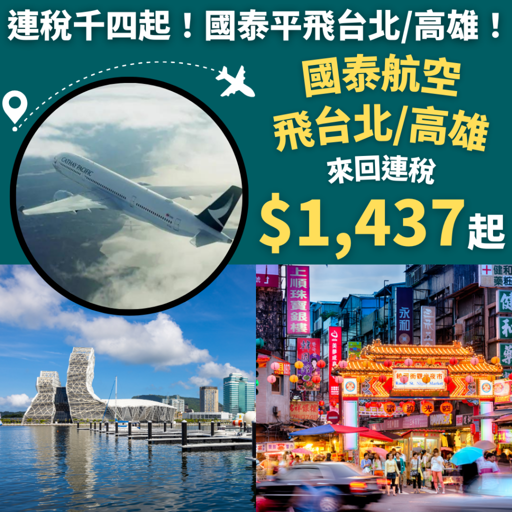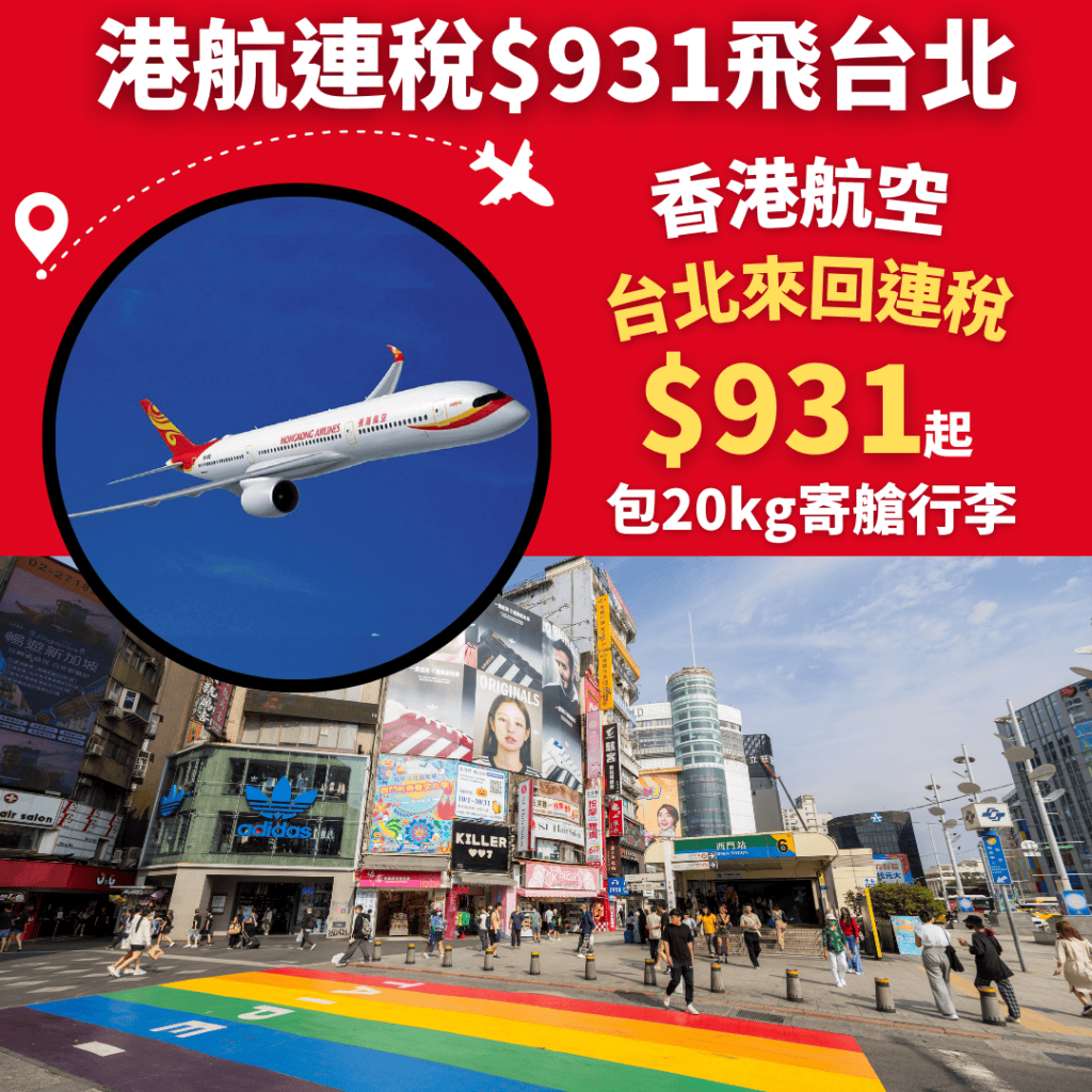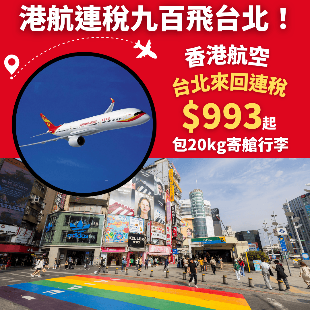 嘩!連稅九百飛台北!包20kg行李!7月10日前出發!香港飛台北來回連稅只需$960起 – 香港航空 (優惠至3月27日)